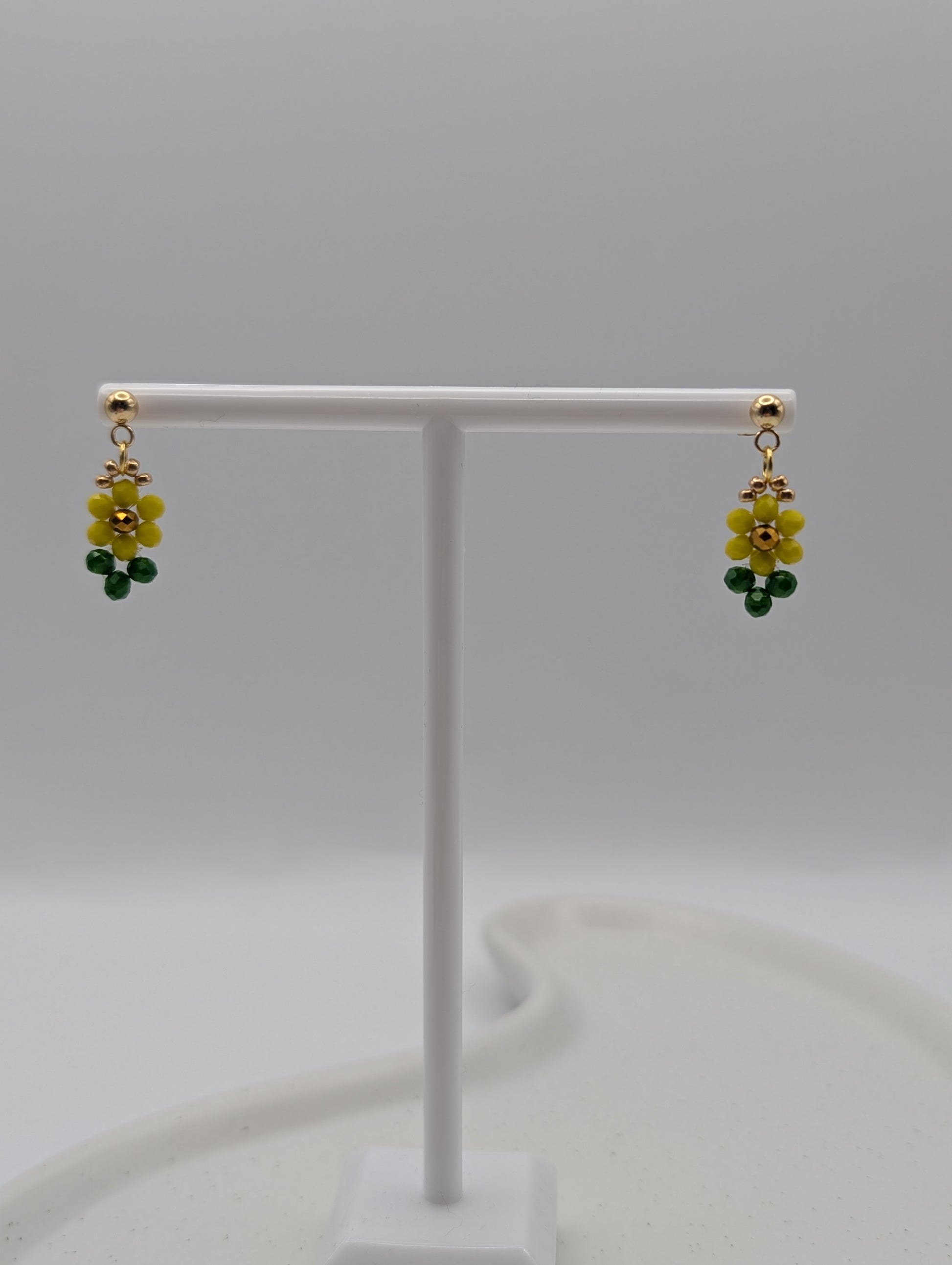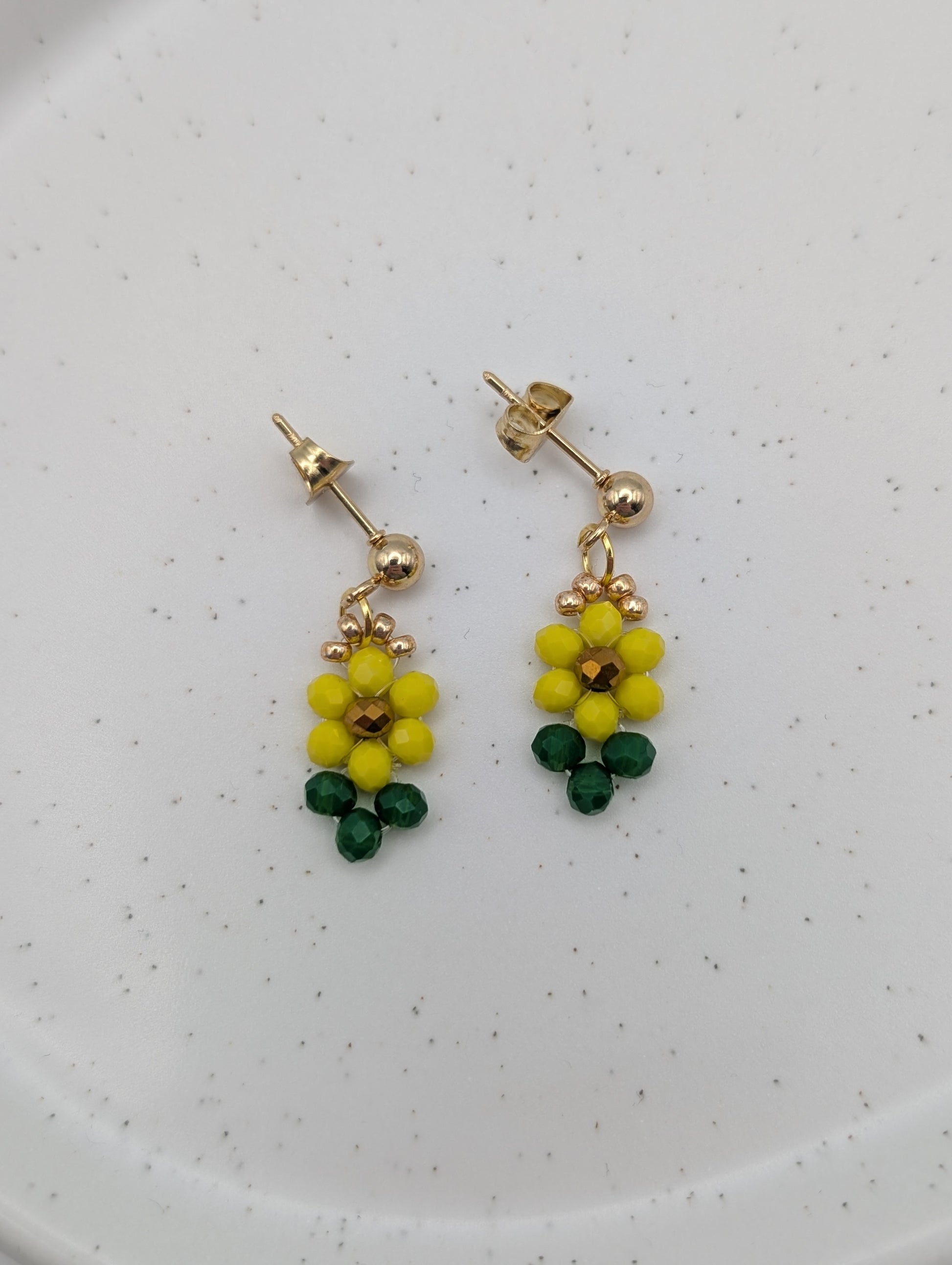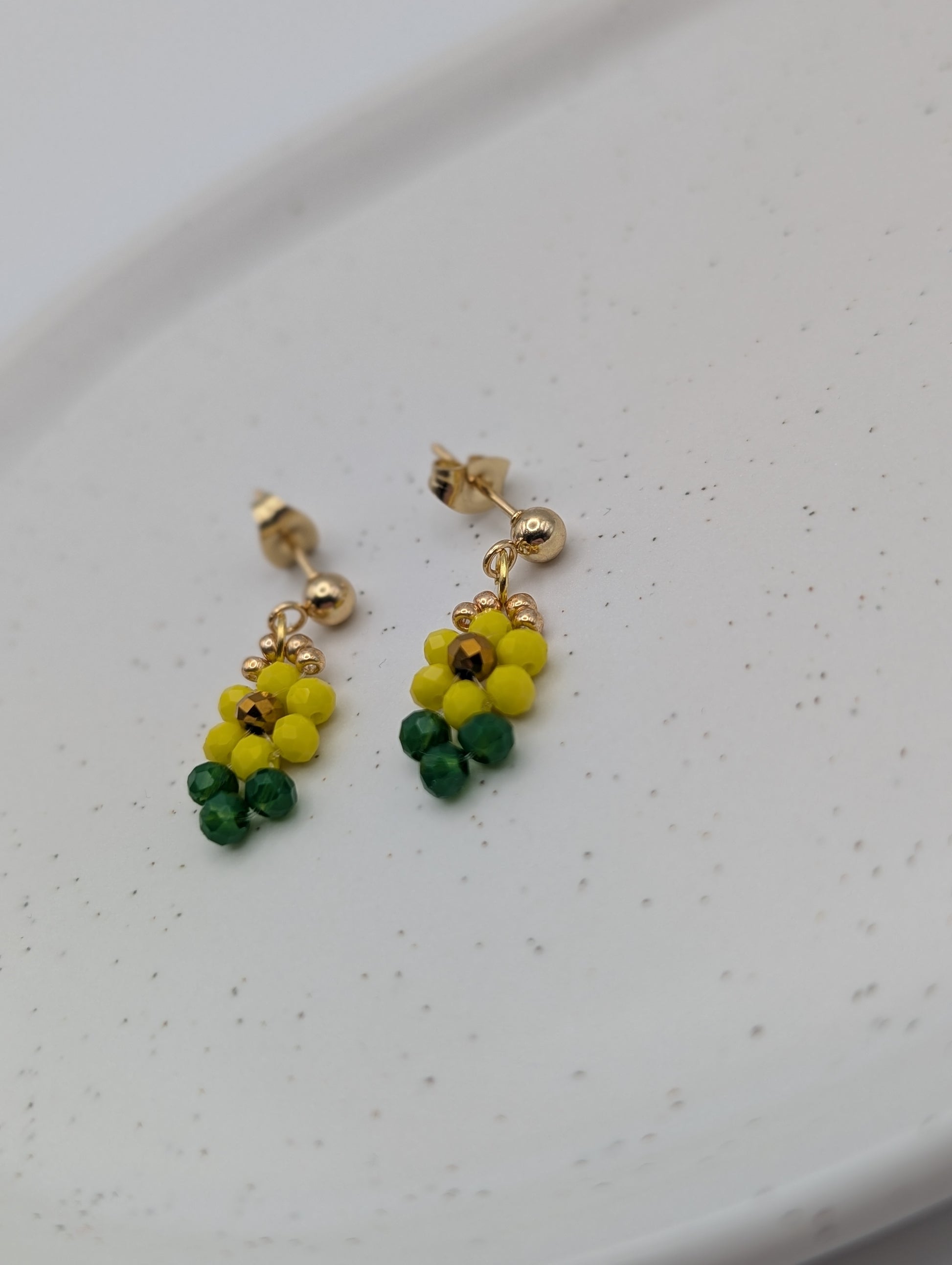 Sonnenblumen-Ohrringe | Zarte Perlenohrringe in Gelb & Grün | 1072